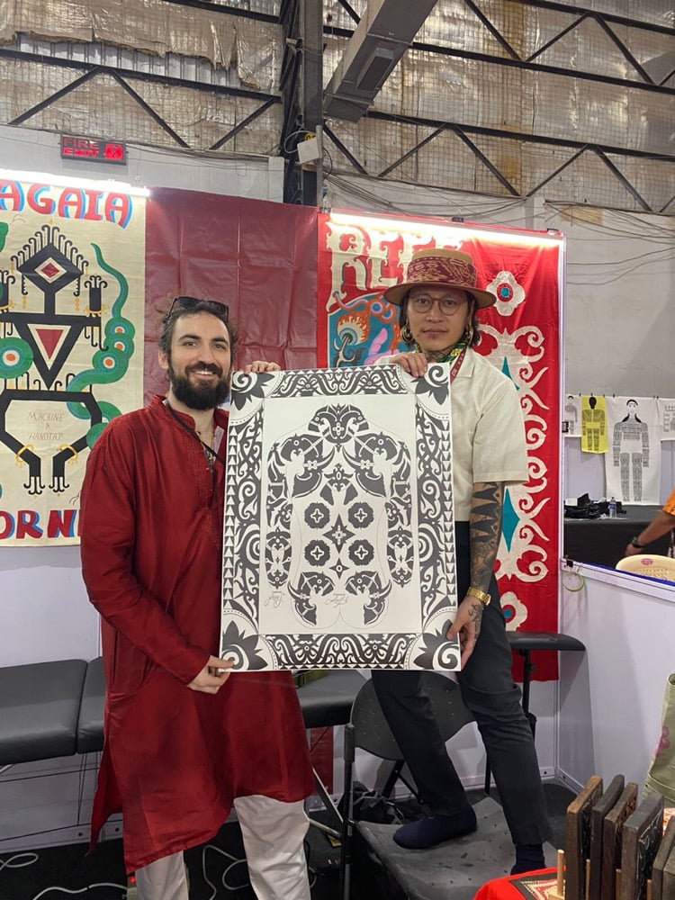 30x22in High quality prints on Art matte paper. This print is completely dedicated to the union of cultures through seeking the benefit of humankind. 100% of proceeds go to the Bunga Terong Project, which aids in providing, building, and financing longhouses to be built across Sarawak, Malaysia. This project was started by fellow tattooers and friends, Reef and Nagaia of RAKTA Dhatu in Kuching, Sarawak.