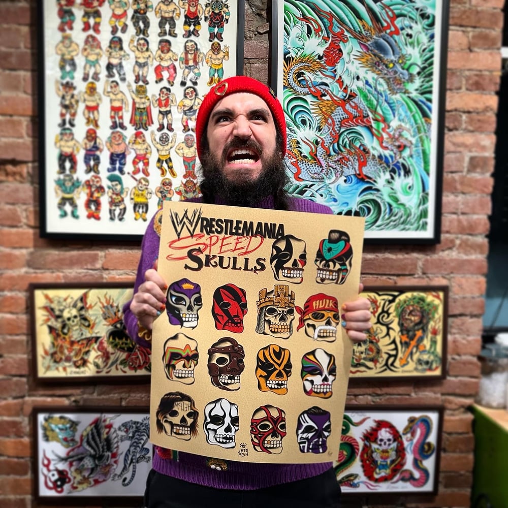 Poster design by M. Scutella is a tribute to WWE’s vast history of masked and decorated wrestlers who’ve entertained us for generations.